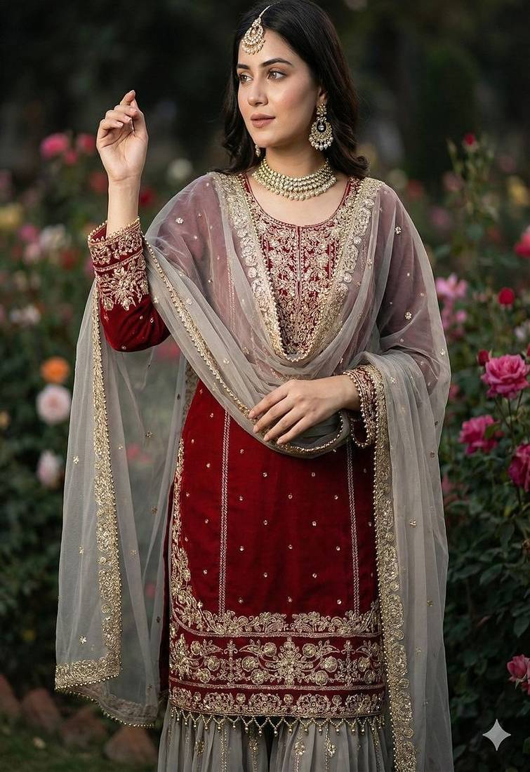 | Product Name | Dark Maroon Faux Georgette Zardosi Sharara Set | |