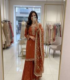 Dark orange silk-blend sharara set stitched