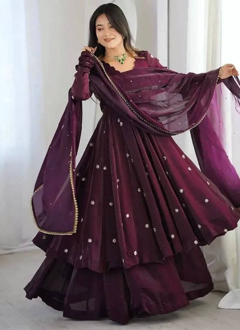 | Product Name | Deep Wine Anarkali Gown With Moti And Sequins Work | |
