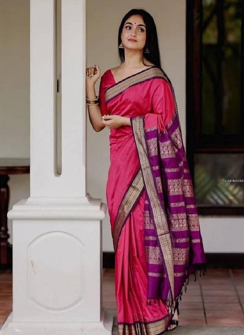 Product Name Elegant Pink Designer Silk Blend Saree