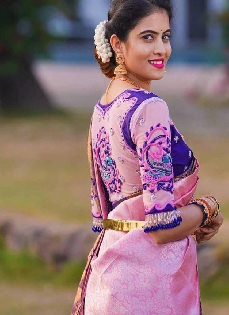 | Product Name | Elegant Pink Purple Silk Blend Saree | |