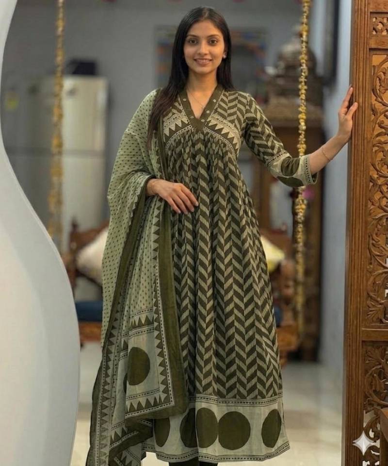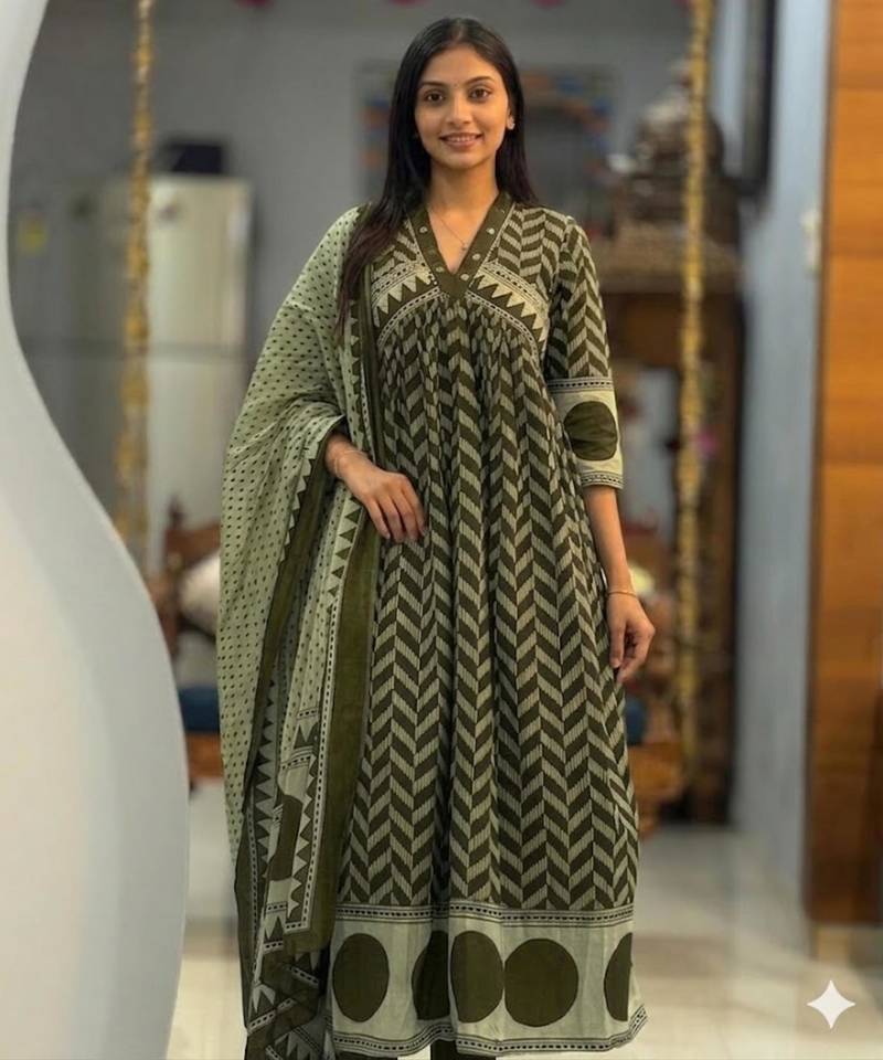 | Product Name | Olive Green Cotton Anarkali Set | |