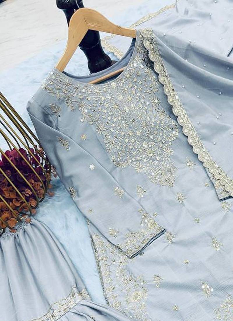 This Graceful Grey Embroidered Suit Showcases Subtle Detailing With A Beautifully Bordered Dupatta. The Elegant Silhouette And Soft Fabric Ensure Comfort Without Compromising Style. Perfect For Formal Gatherings, Festive Functions, And Sophisticated Daytime Events.