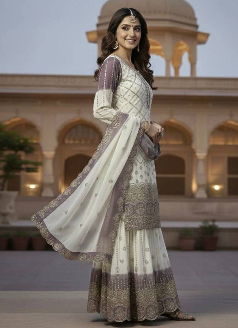| Product Description | This Ivory And Mauve Ethnic Set Blends Soft Pastel Tones With Intricate Gold Embroidery. The Beautifully Bordered Dupatta And Detailed Hemline Create A Luxurious Finish. Designed For Comfort And Elegance, This Outfit Is Ideal For Festive Gatherings, Engagement Ceremonies, And Special Celebrations. |