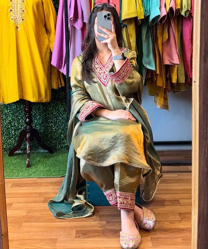 | • | Kameez | : | Color- Light Olive / Fabric- Silk Blend |