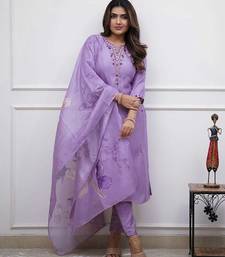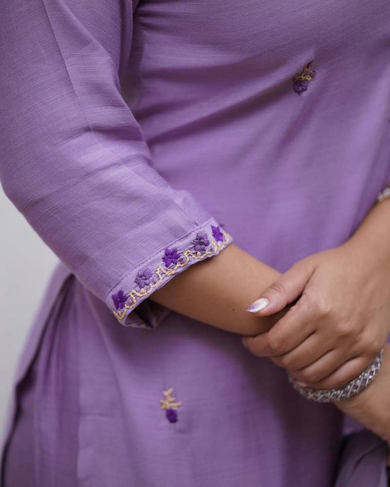 Light-purple embroidered kurta set stitched