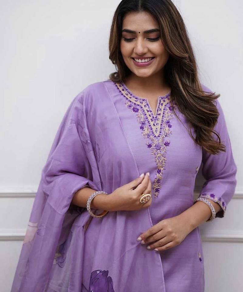 | Product Description | Soft Light Purple Kurta With Elegant Thread Embroidery On Neckline And Sleeves. Paired With Matching Dupatta, Perfect For Festive Gatherings And Light Wedding Events. |