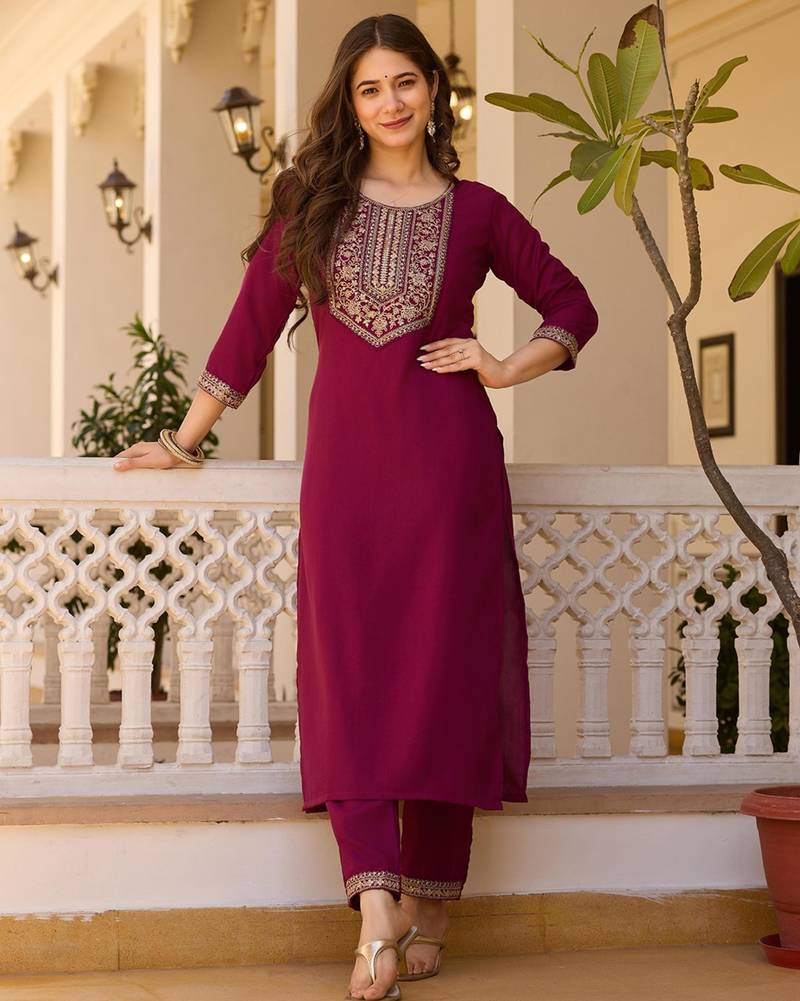 Maroon embroidered kurta set