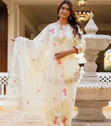 Off white satin embroidered kurta sets