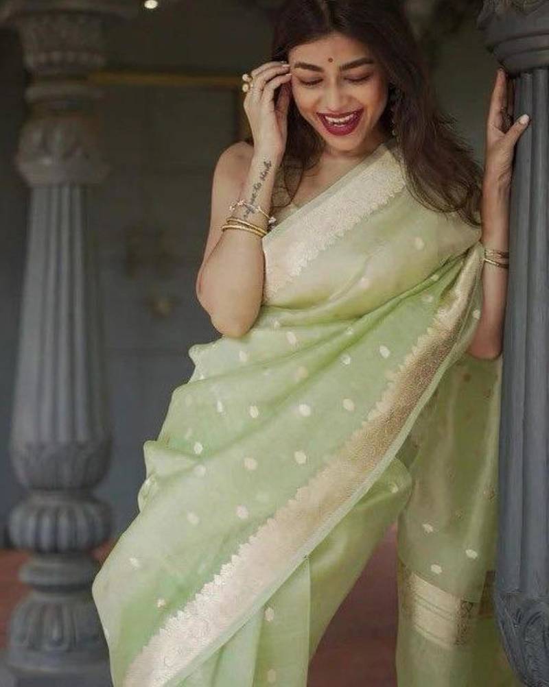 | Product Description | Embrace A Breezy, Ethereal Aesthetic With This Lovely Pastel Mint Green Silk Blend Saree. Sprinkled With Subtle Silver Woven Dots And Finished With An Elegant, Refined Light Border, This Lightweight, Lustrous Drape Is A Splendid Choice For Stylish Daytime Events And Chic Summer Celebrations. |