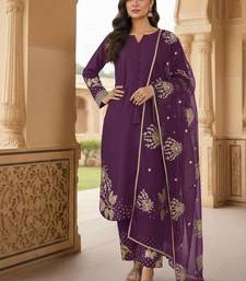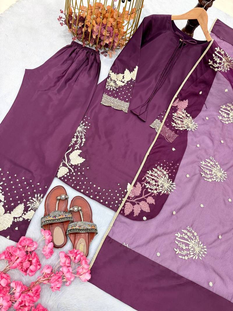 Plum embroidered kurta set stitched