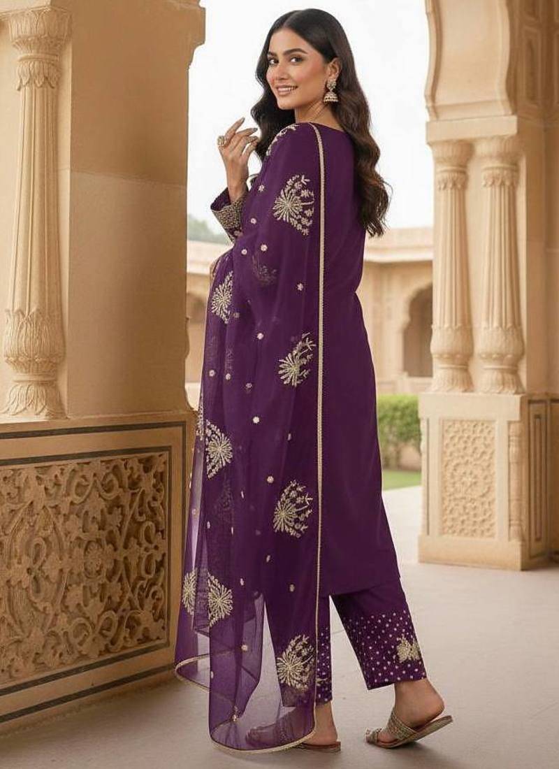 | Product Description | This Plum Embroidered Kurta Set Features Delicate Gold Motifs And A Lightweight Dupatta For An Elevated Ethnic Look. The Straight Silhouette Ensures Comfort And Versatility, Making It Suitable For Festive Celebrations, Cultural Events, And Special Gatherings. A Perfect Blend Of Tradition, Elegance, And Modern Sophistication. |