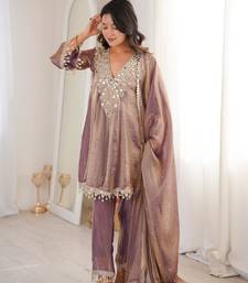 Purple mirror work suit stitched