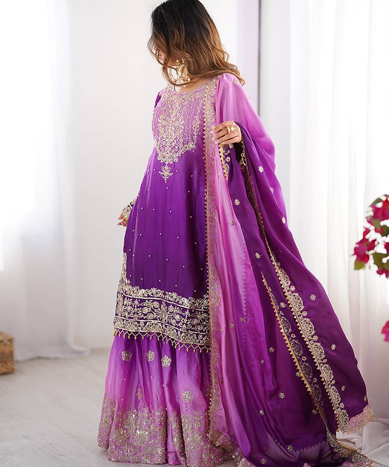 | Product Name | Purple Ombre Embroidered Sharara Set | |