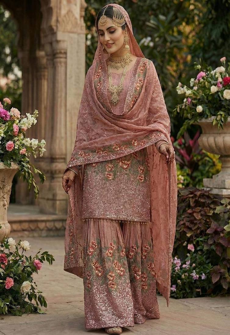 | Product Description | Step Into Timeless Elegance With This Rose Sharara Suit Adorned With Floral Embroidery. The Flared Sharara Pants And Matching Dupatta Create A Regal Silhouette. Made From High Quality Fabric With Fine Craftsmanship, This Outfit Is Perfect For Weddings, Engagement Parties, And Traditional Celebrations. |