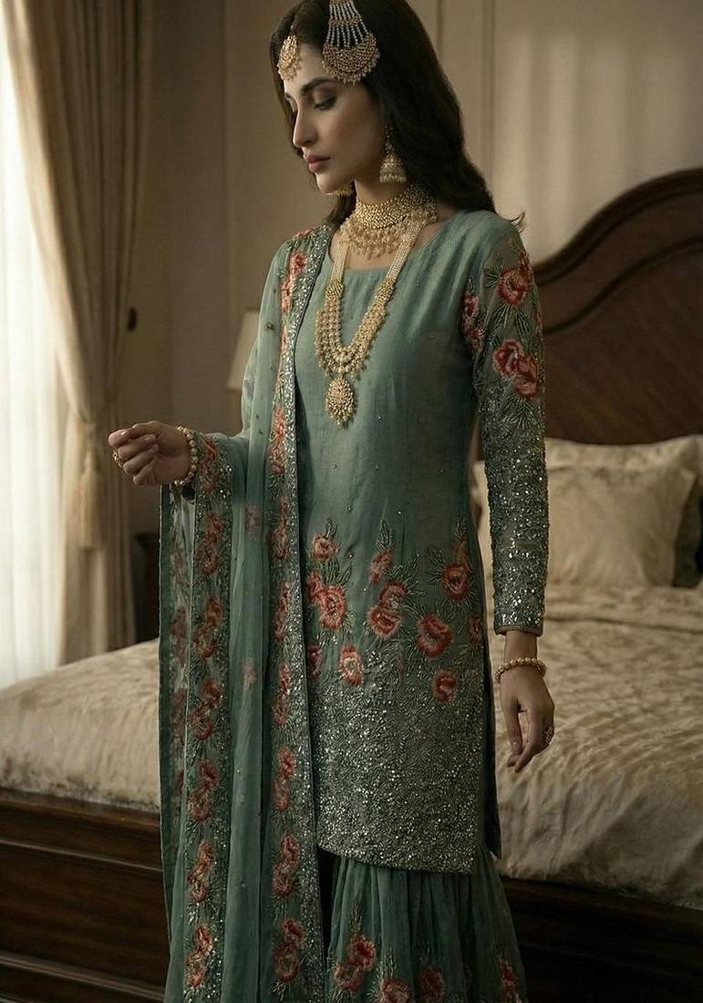| Product Name | Sea Green Embroidered Sharara Suit | |