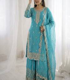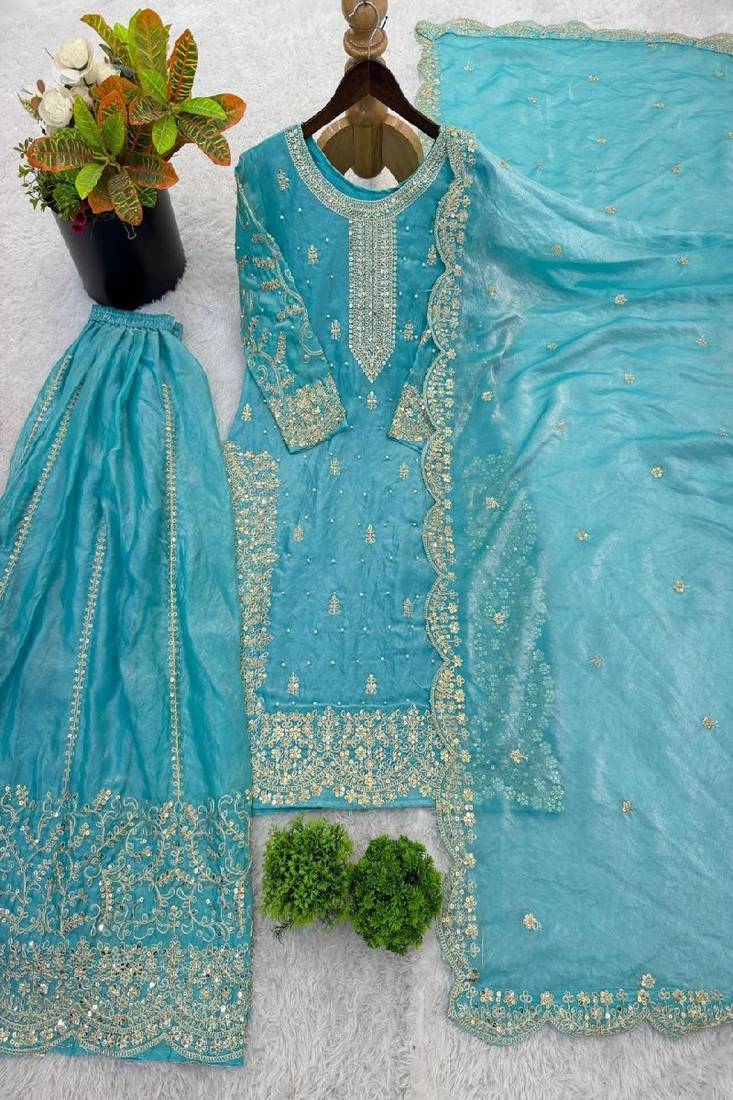 | Product Description | Graceful Sky Blue Sharara Suit Designed With Intricate Embroidery And Elegant Embellishments. The Stylish Kurta, Flared Sharara Pants, And Matching Dupatta Create A Refreshing Festive Ensemble. Ideal For Weddings, Celebrations, And Cultural Occasions. Soft Fabric And Detailed Craftsmanship Ensure Comfort While Delivering A Sophisticated Traditional Appearance. |