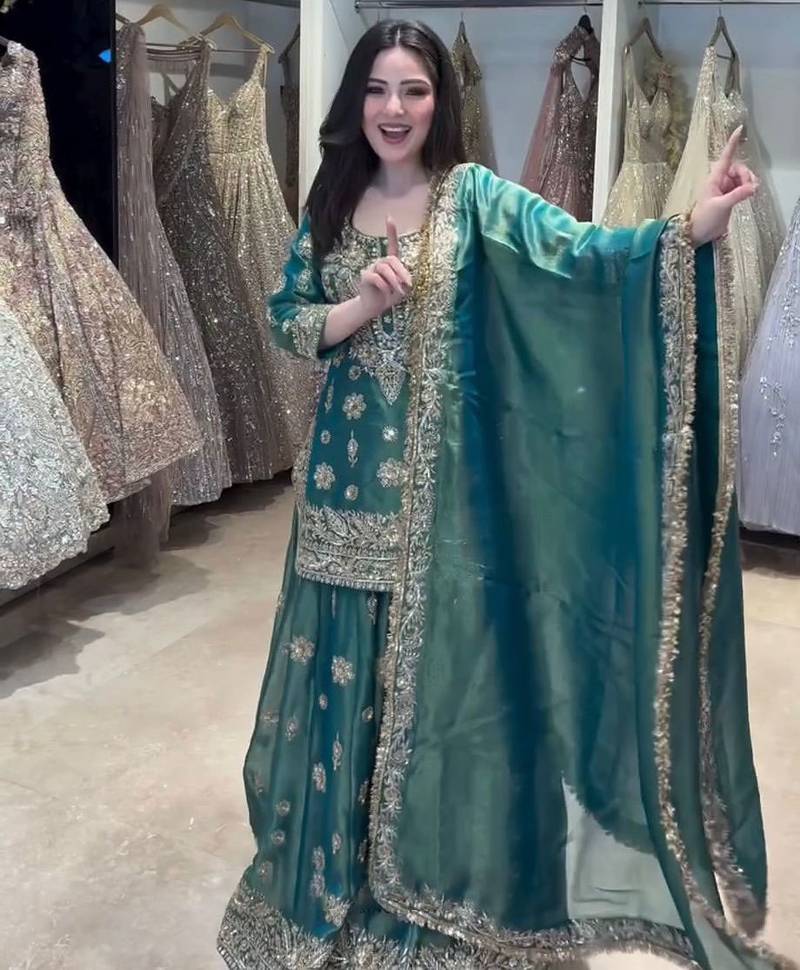 | • | Dupatta | : | Color- Teal / Fabric- Silk Blend |