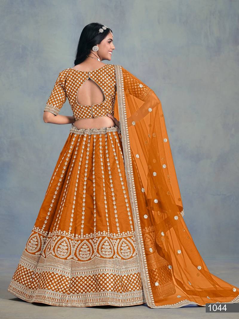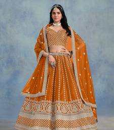 Orange art silk embroidered semi stitched lehenga choli size up to 42