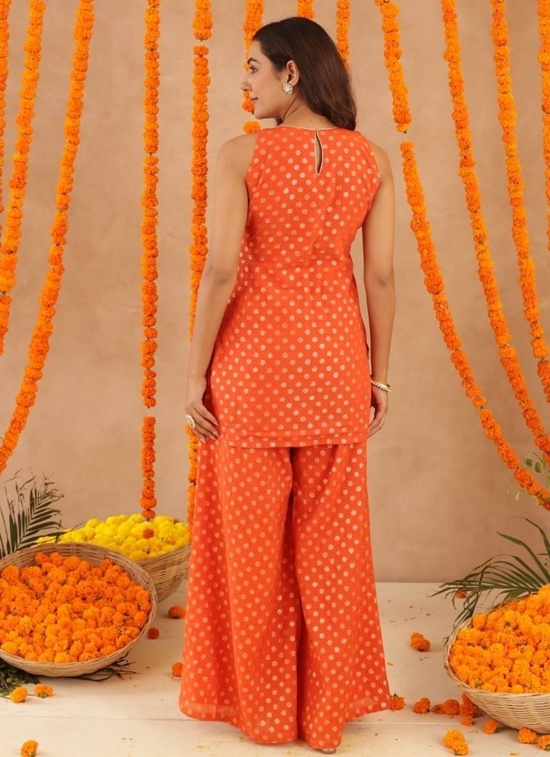 | Product Name | Hiya Orange Short Detailed Kurti Palazzo Set | |