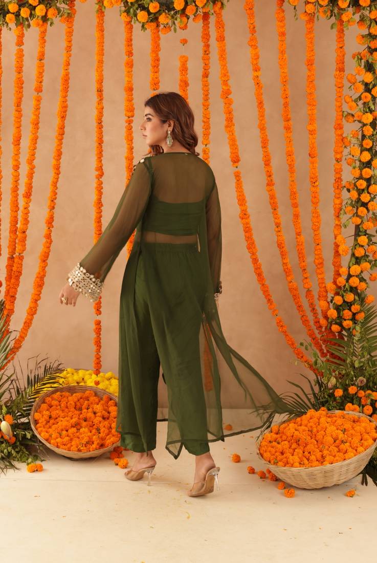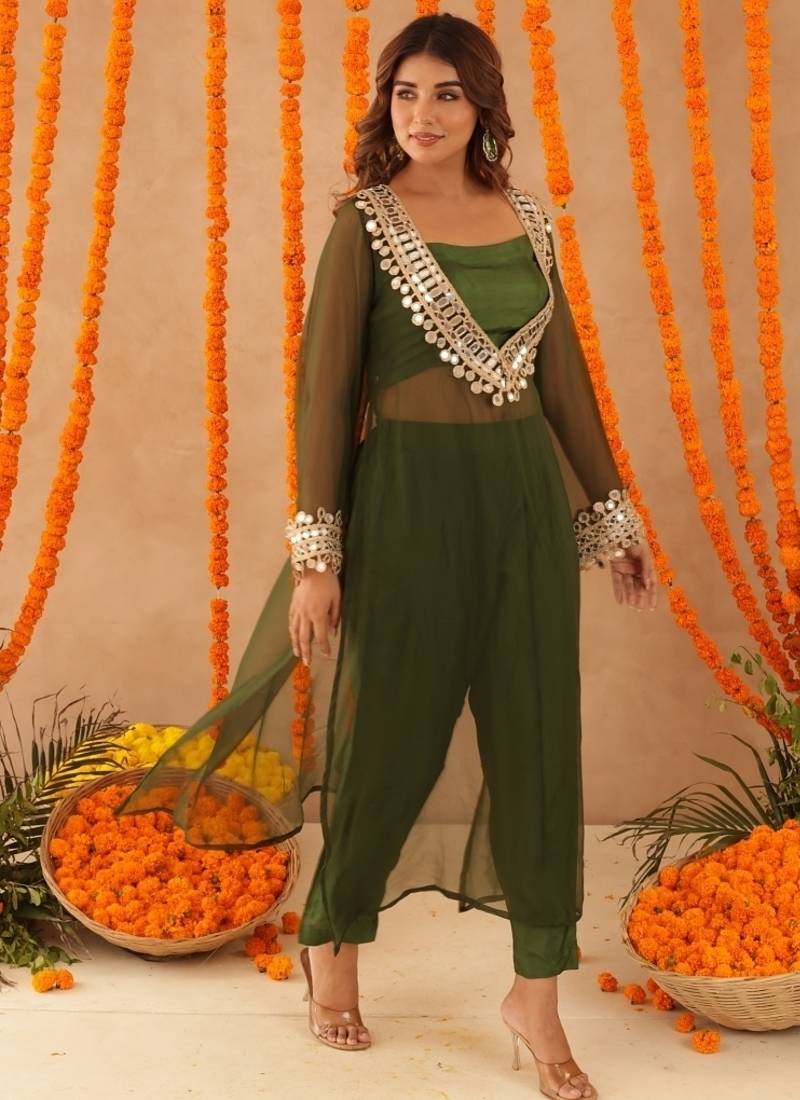 Product Name Nida Green Mirror Lace Work Fusion Set