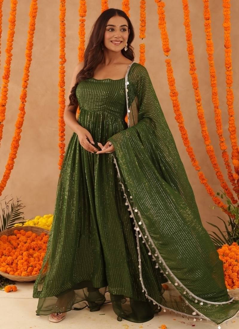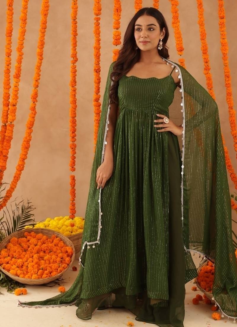 Sobhita green lurix kurta set stitched