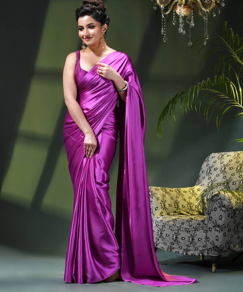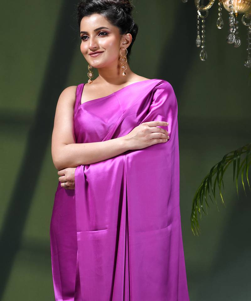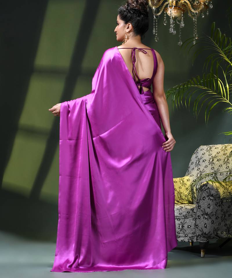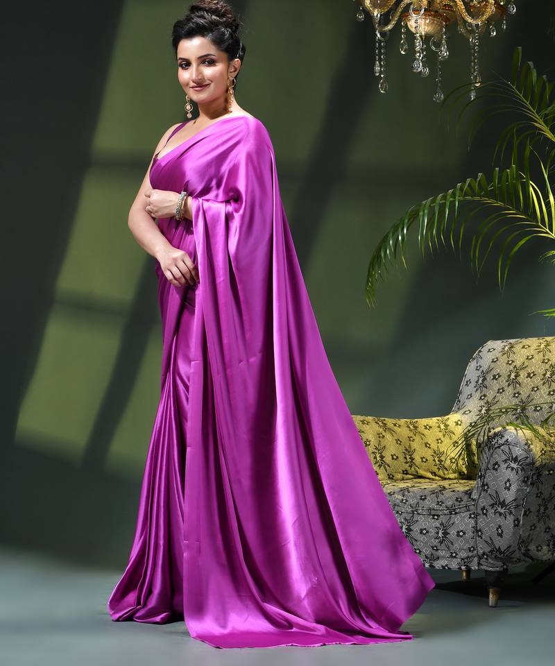 Soft satin silk saree one color solid design satin sari crepe farewell saree for women