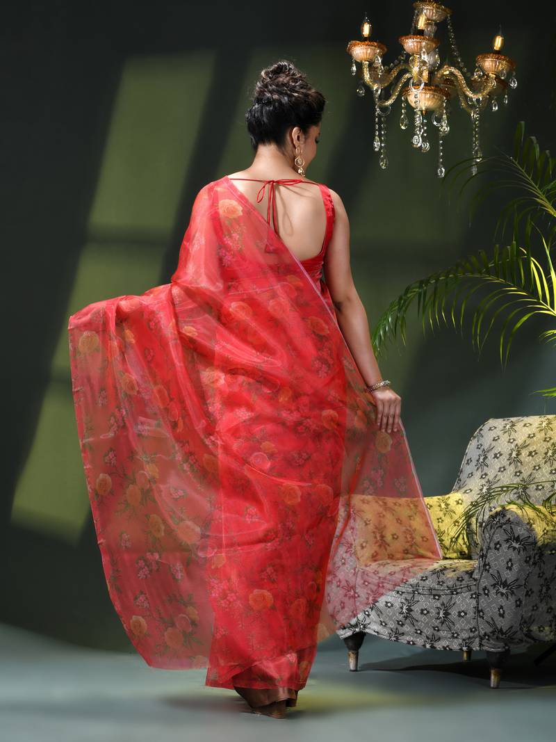 Product Name Women's Printed Organza Sari Trending Rose Leaf Design Fancy Wedding Saree For Women