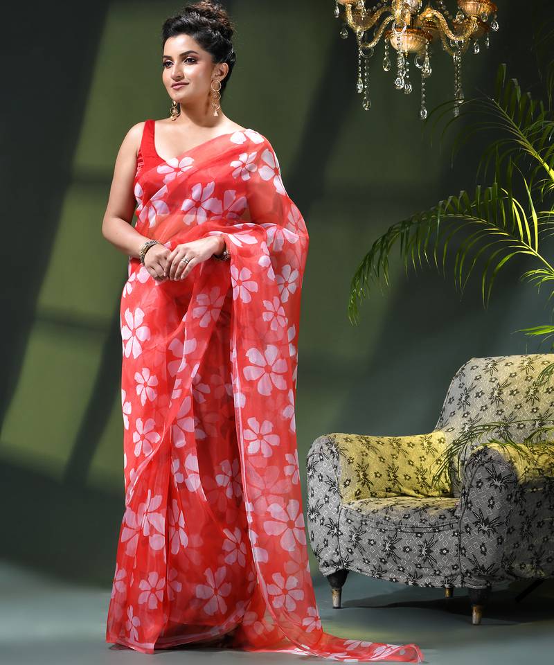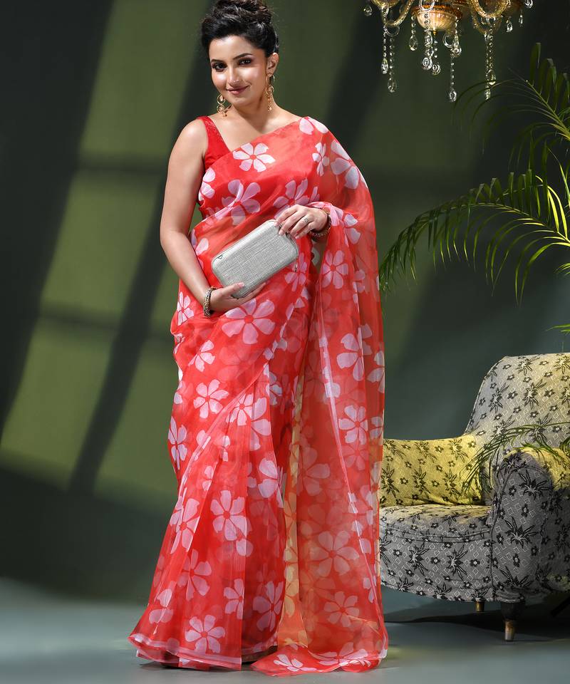 Type Organza Sarees , Floral Print