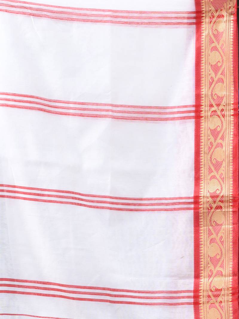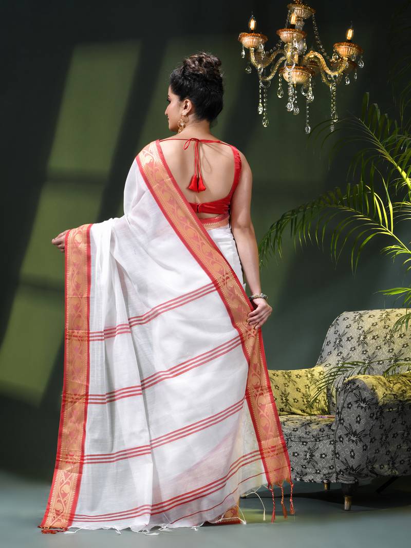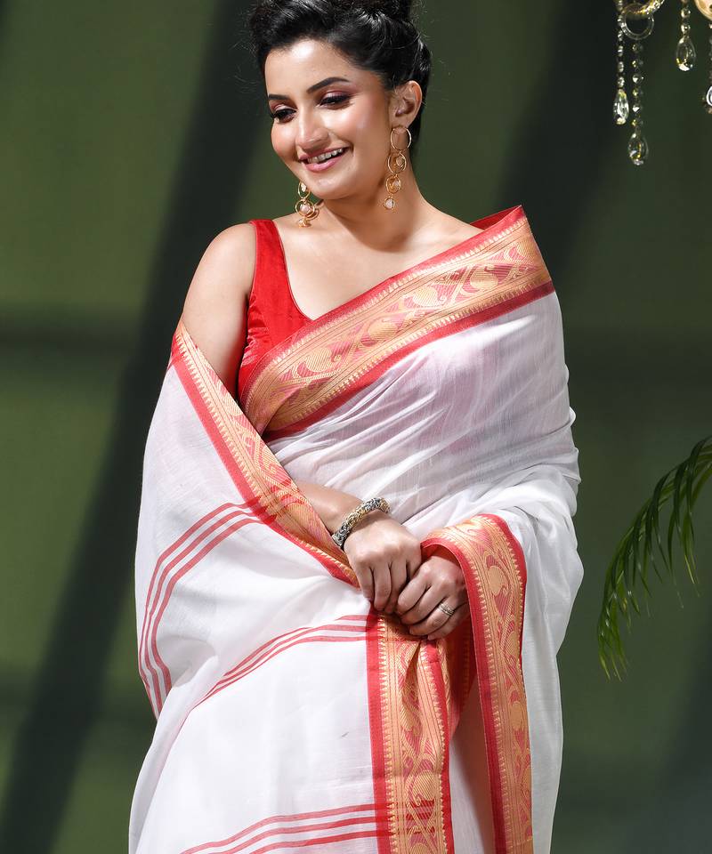 Saree : Color- White / Fabric- Cotton Silk