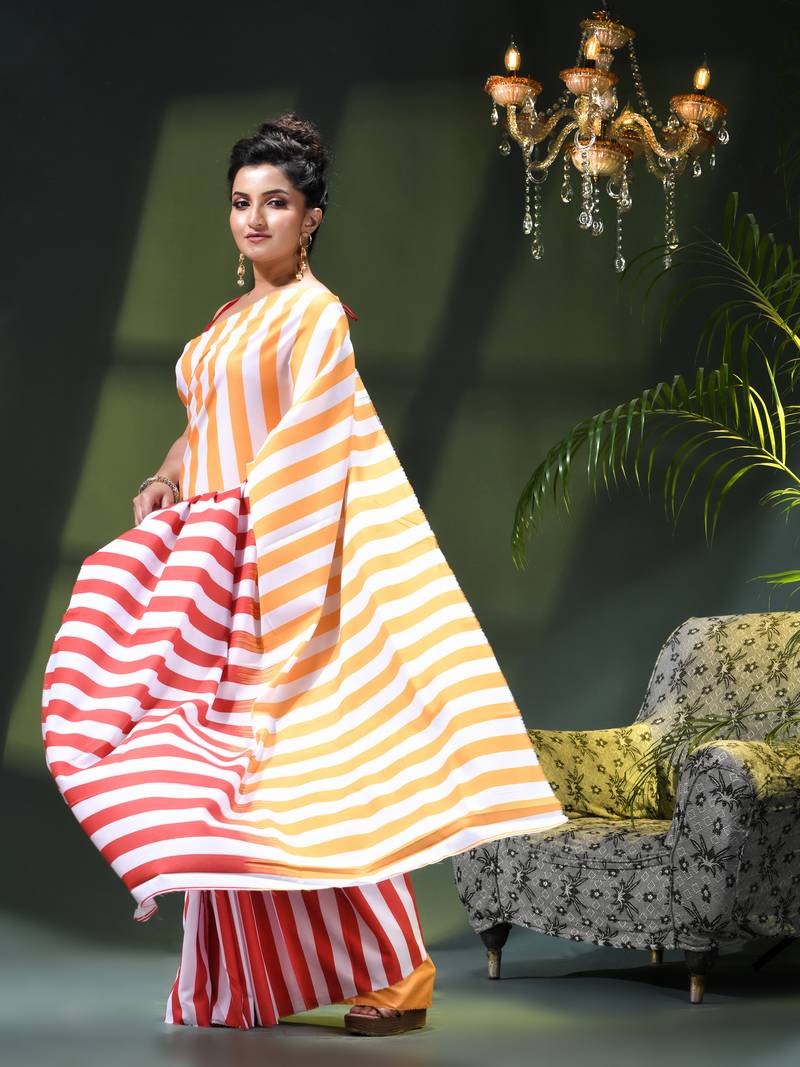 Type Crepe Sarees , Stripes Print