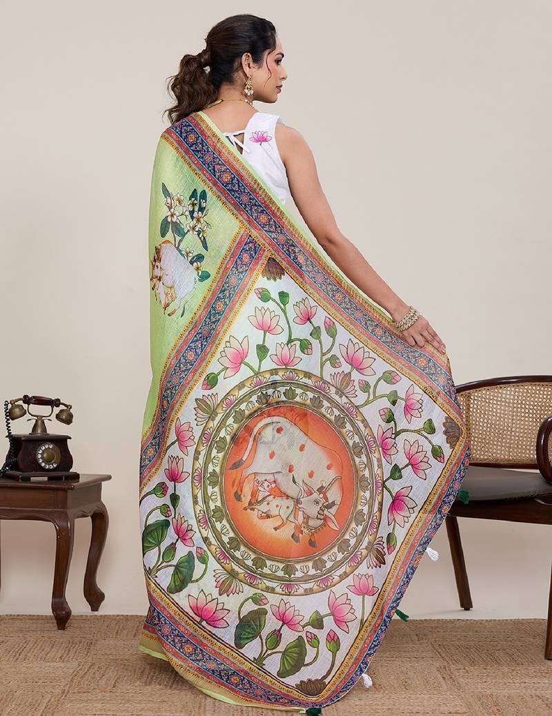 | Product Name | Light Green Printed Linen Designer Saree With Blouse | |