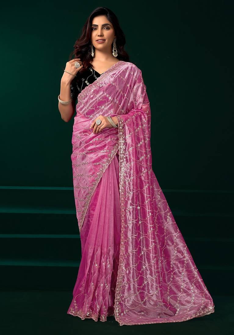 | • | Saree | : | Color- Pink / Fabric- Net |