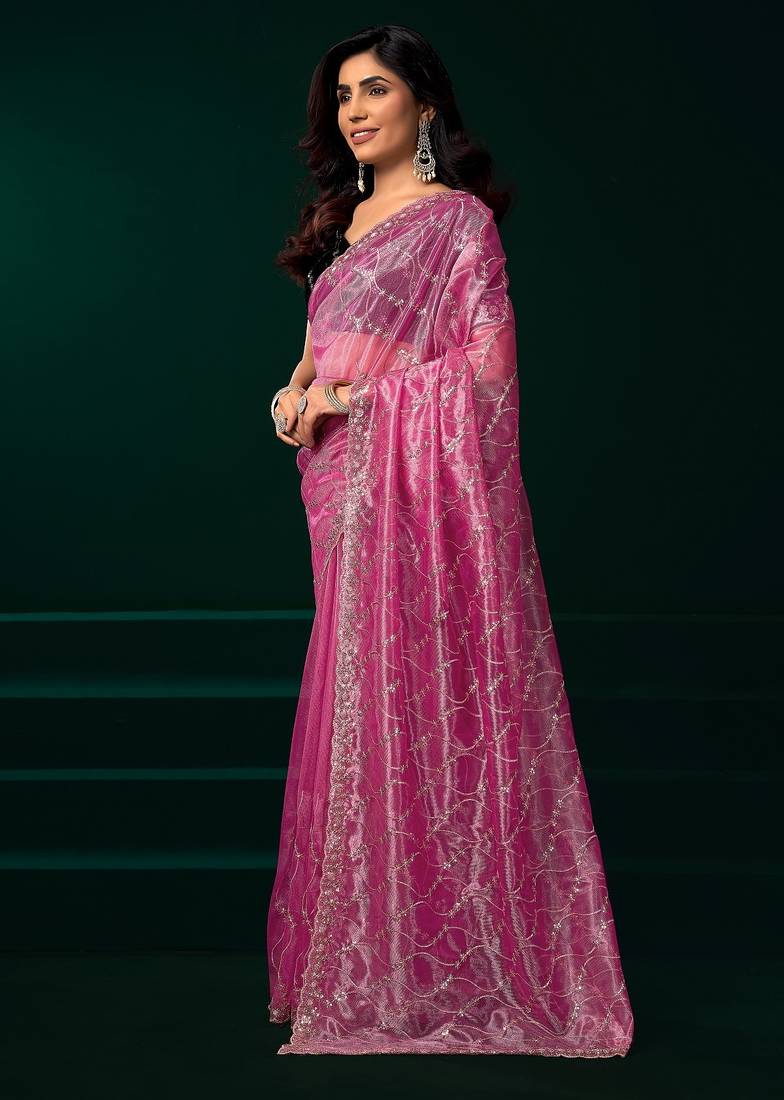 | Product Name | Pink Thread Work Net Party Wear Saree With Velvet Blouse | |
