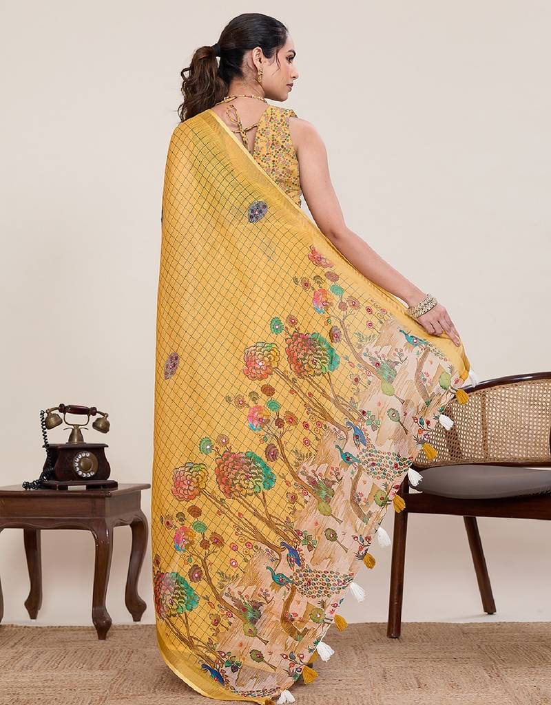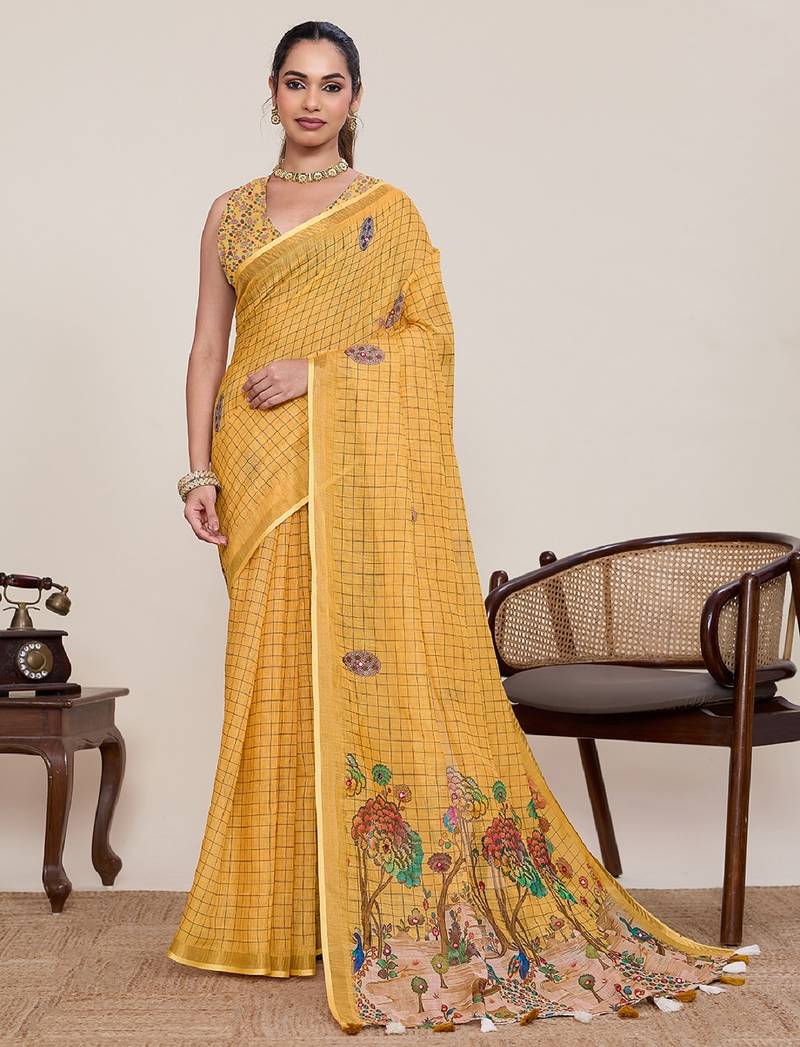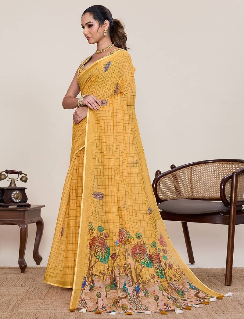 | Product Name | Yellow Printed Linen Designer Saree With Blouse | |
