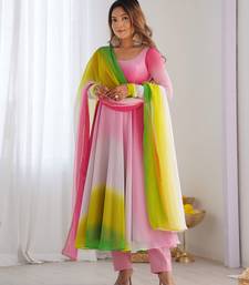 Pure soft fox georgette most trendy padding fabric fully flair anarkali,with duppta set,pent ready to wear stitched