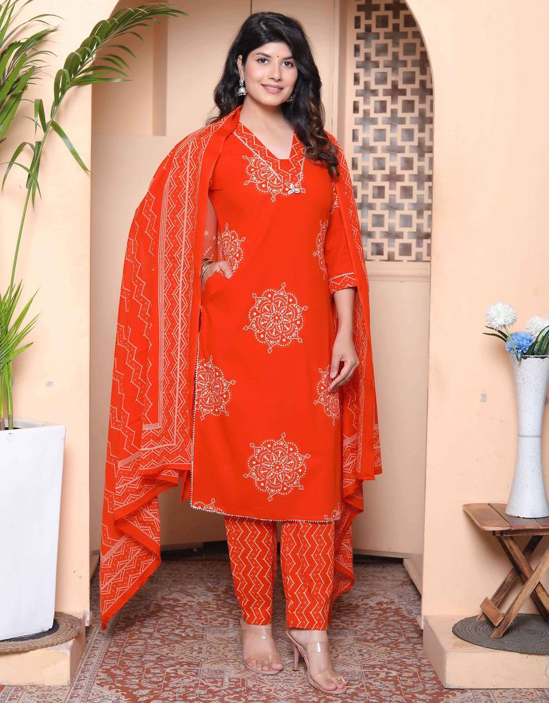 | Product Name | Womens Floral Printed Straight Fit Kurta With Palazzo And Dupatta Orange | |