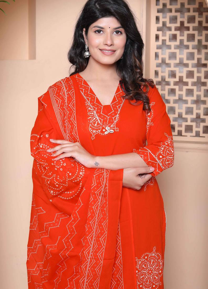 | Product Description | Elevate Your Ethnic Charm With This Floral Printed Straight Fit Kurta Set In A Rich Orange Hue. Crafted From Breathable Cotton, It Features A Smart Mandarin Collar And Three Quarter Sleeves. Paired With A Matching Printed Palazzo And A Pure Cotton Dupatta, This Ensemble Blends Elegance With Effortless Comfort Perfect For Festive And Casual Occasions Alike. |