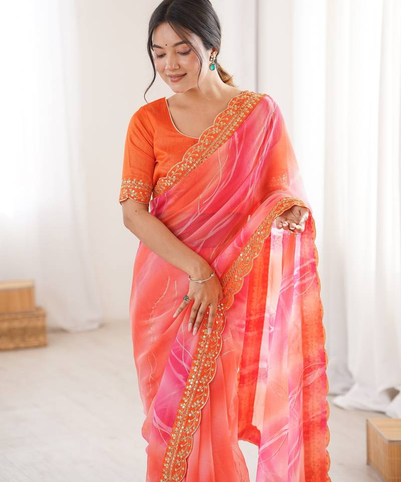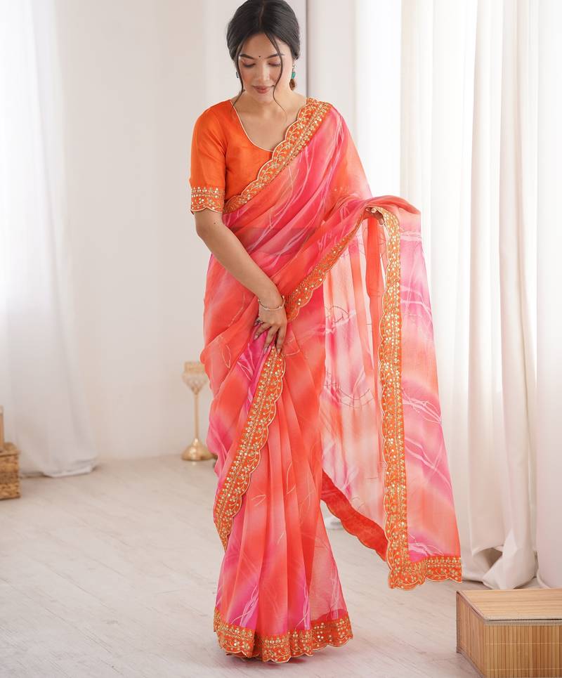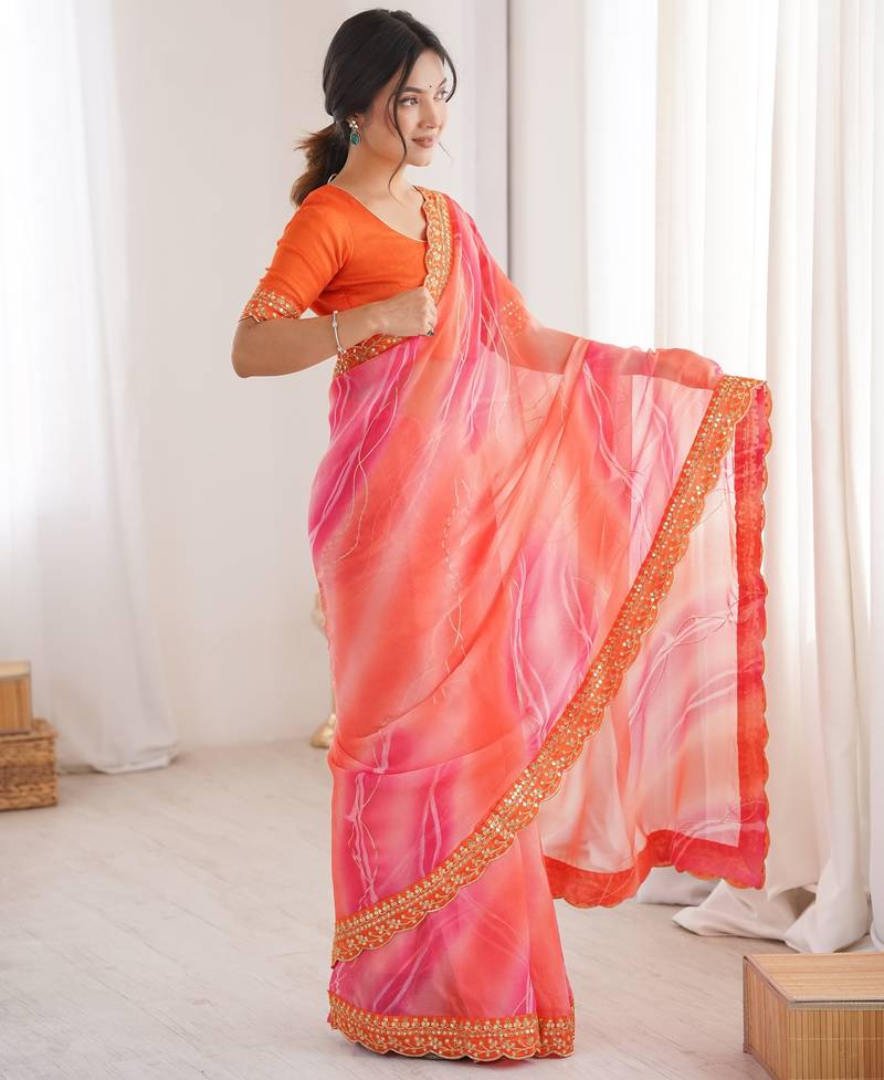 | Product Name | Padding Chiffon Georgette Saree With Laheriya Gold Foil Work | |