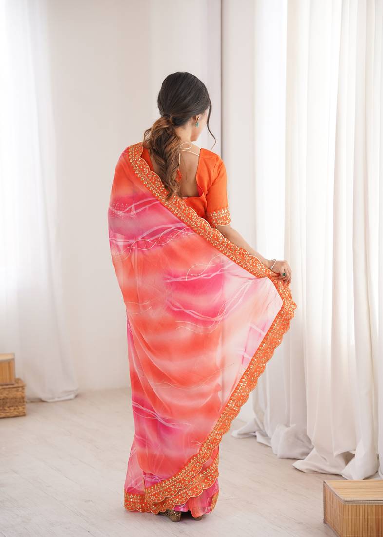 Padding chiffon georgette saree with laheriya gold foil work