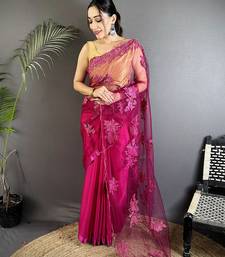 Fuchia floral embroidered fancy georgette saree
