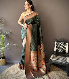 Green soft lichi silk blend jacquard butti zari weaving paithani saree