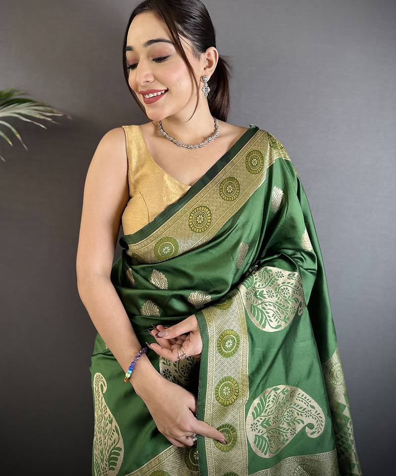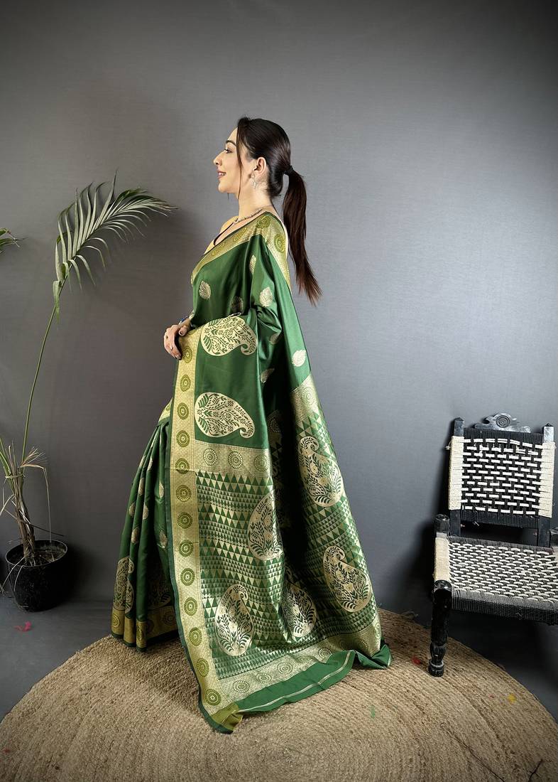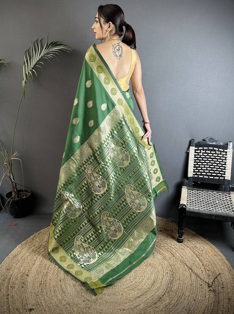 Green soft silk blend paisley zari woven banarasi saree