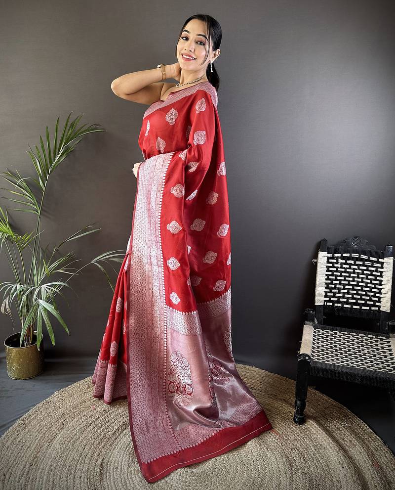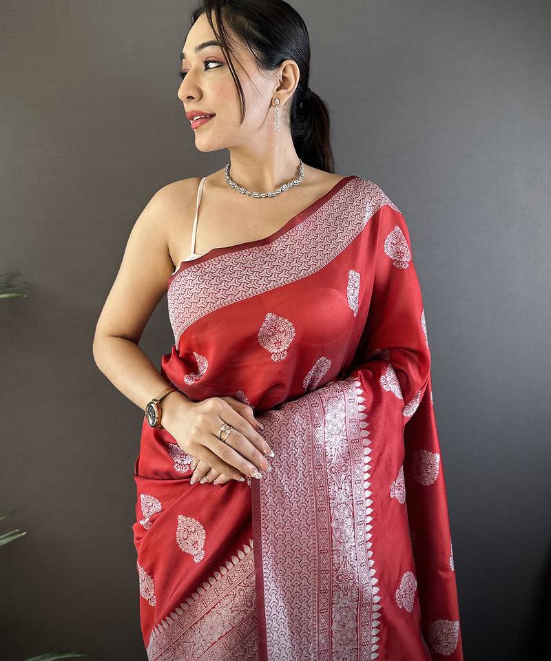 | Product Description | Turn Heads In Celebratory Style With This Maroon Soft Silk Floral Motifs Banarasi Saree A Captivating Piece From Our Most Popular Women’s Ethnic Wear Collection. Draped In A Rich Maroon Shade And Adorned With Graceful Floral Motifs, This Saree Brings Classic Beauty And Contemporary Charm Together In One Stunning Look. A True Top Ranking Mirraw Design & Style, It’s Perfect For Women Who Love Standout Outfits That Blend Tradition With Today’s Fashion Trends.