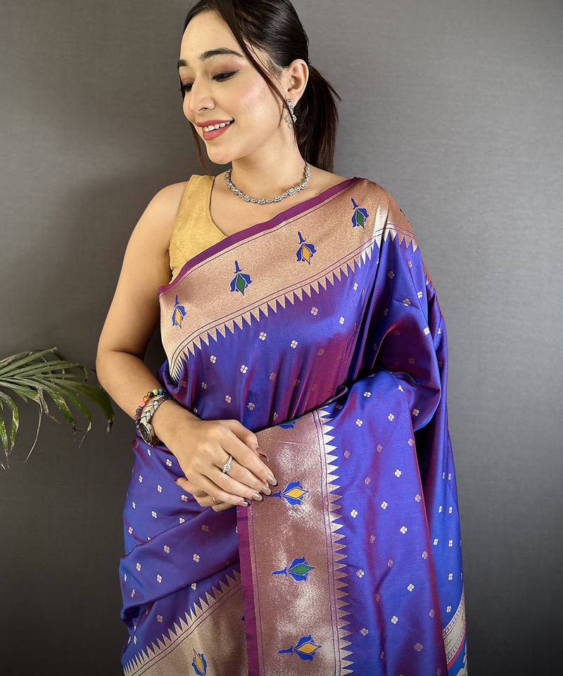 | Product Name | Purple Soft Lichi Silk Blend Peacock & Floral Motifs Jacquard Kanchipuram Saree | |