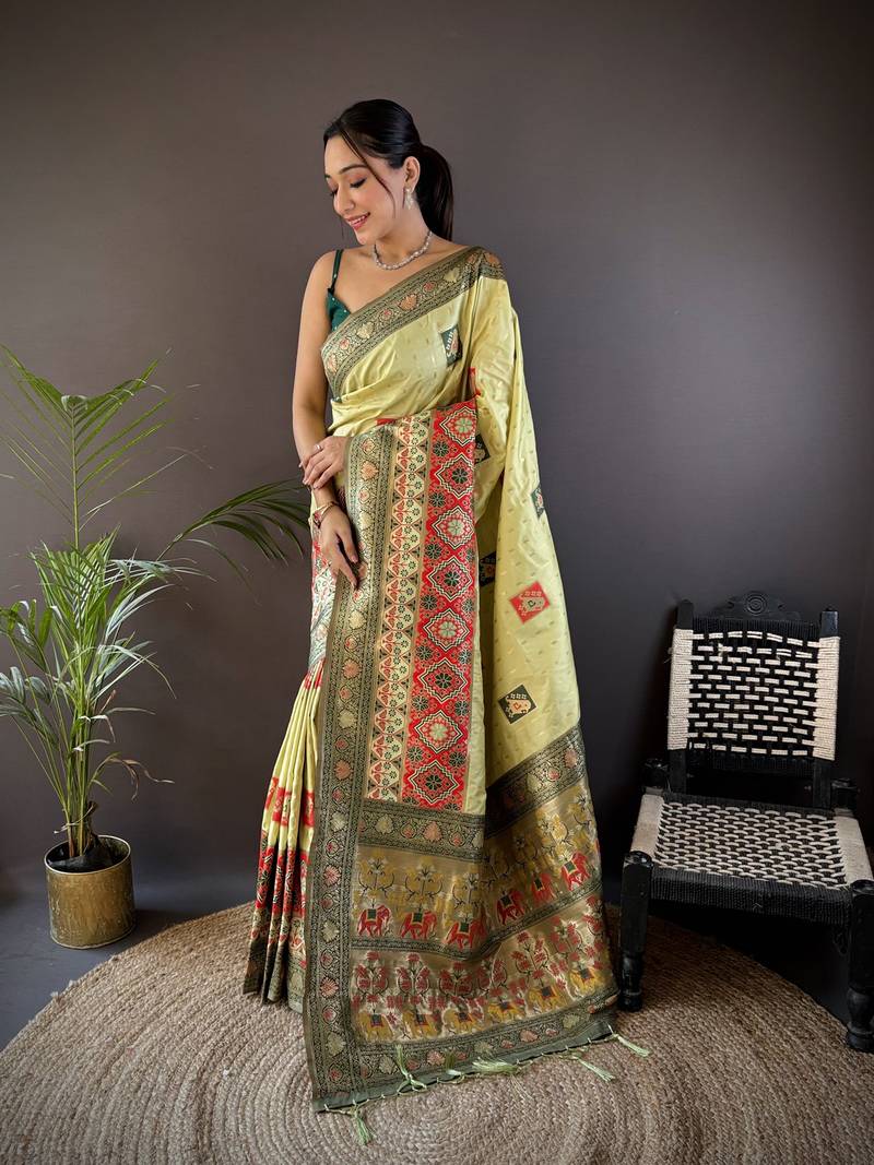 | Product Description | Soft Silk Small Butti Zari Weaving Contrast Weaving Border Banarasi Saree For Women