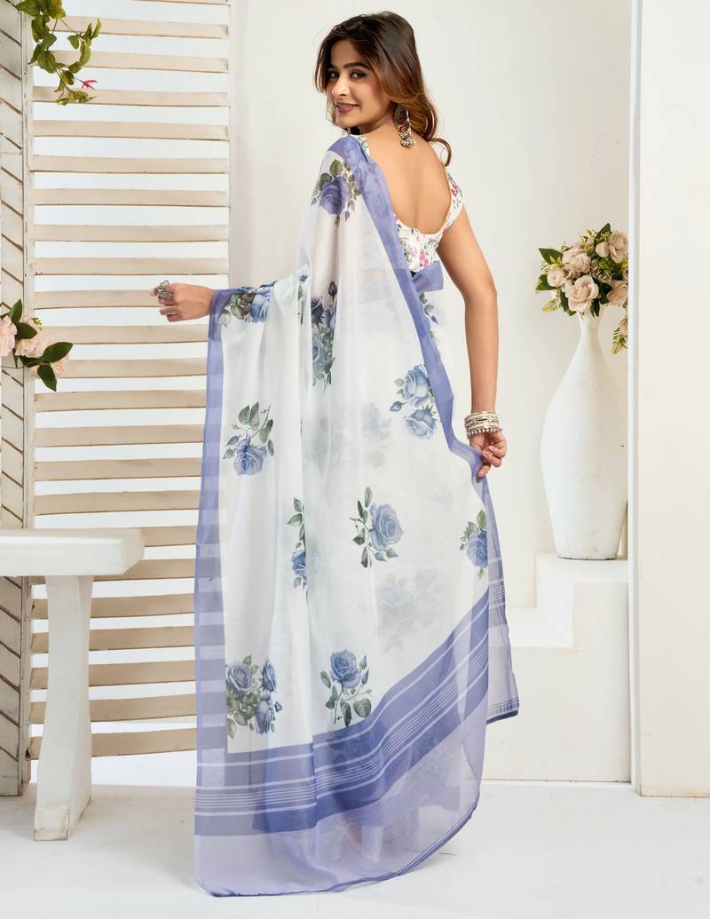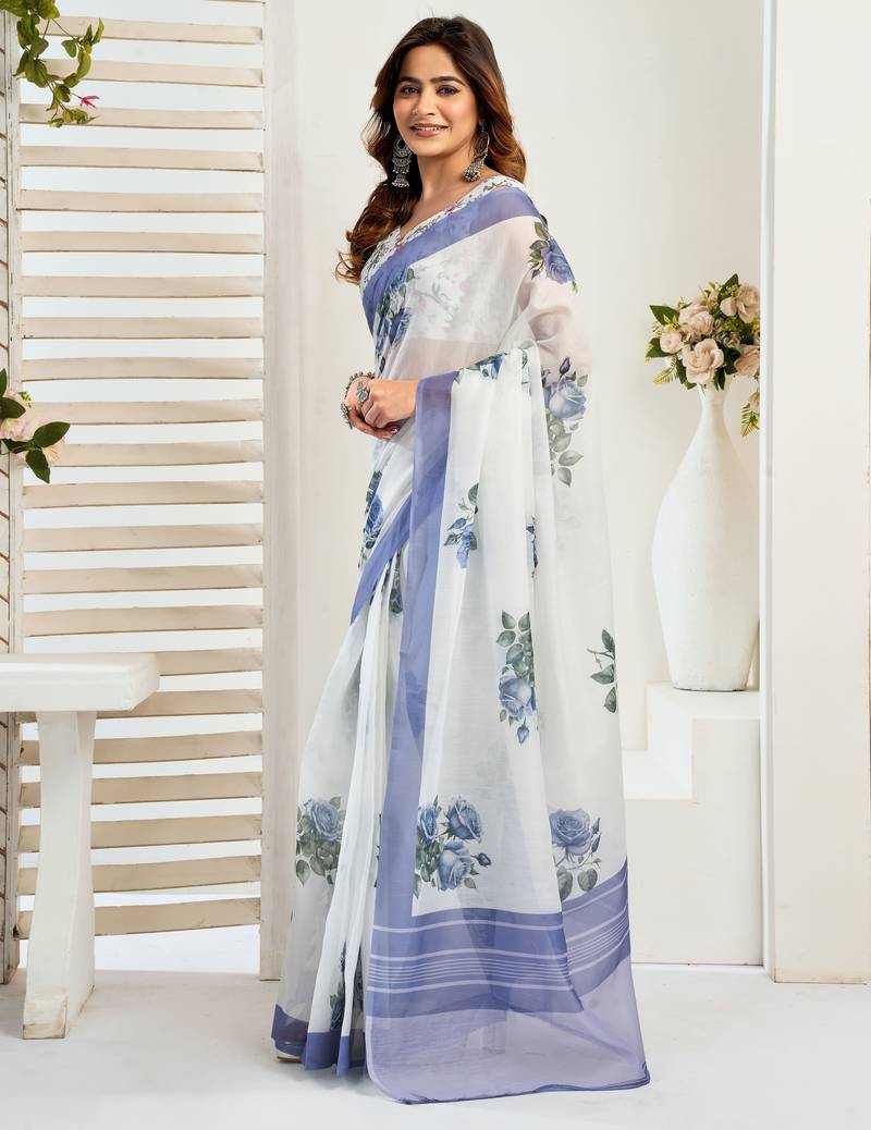 | Product Name | White Linen Floral Printed Ready To Wear Saree | |