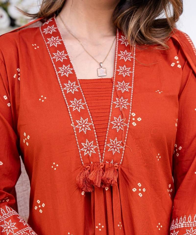 | Product Description | Premium Quality Cotton Cambric Printed A Line Kurti With Beautiful Hand Embroidery And Mirror And Fundi Work With Cotton Dyed Pant And Full Size Cotton Printed Dupatta…..Heavy Quality Easy Wash…. |