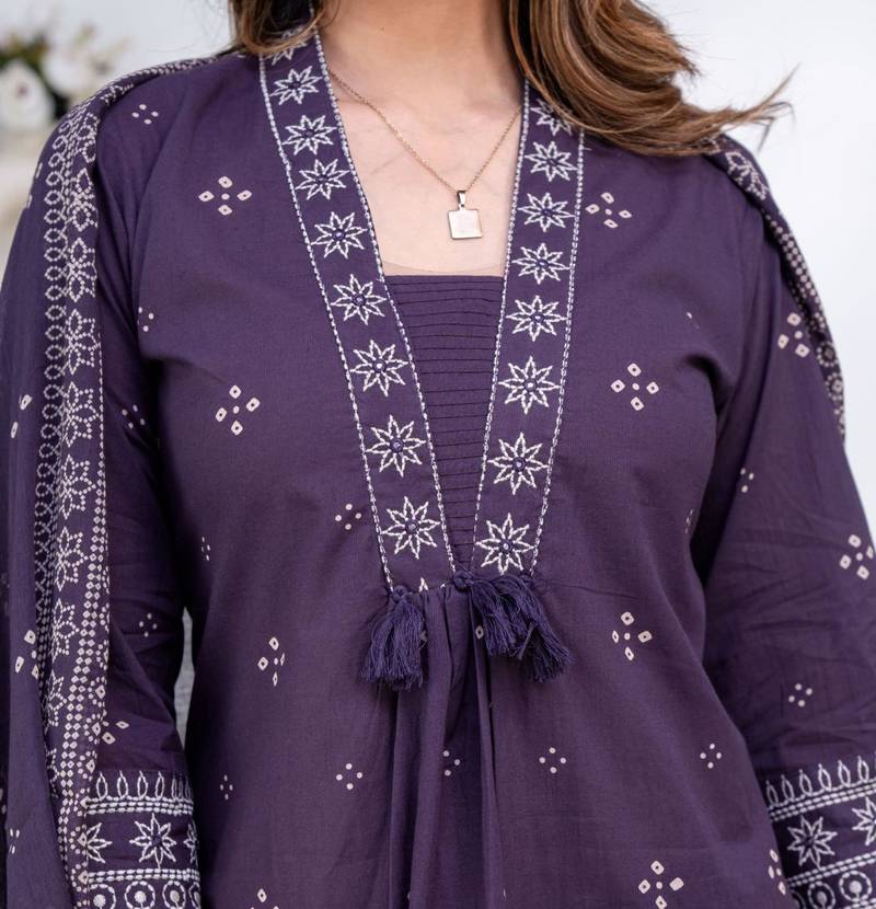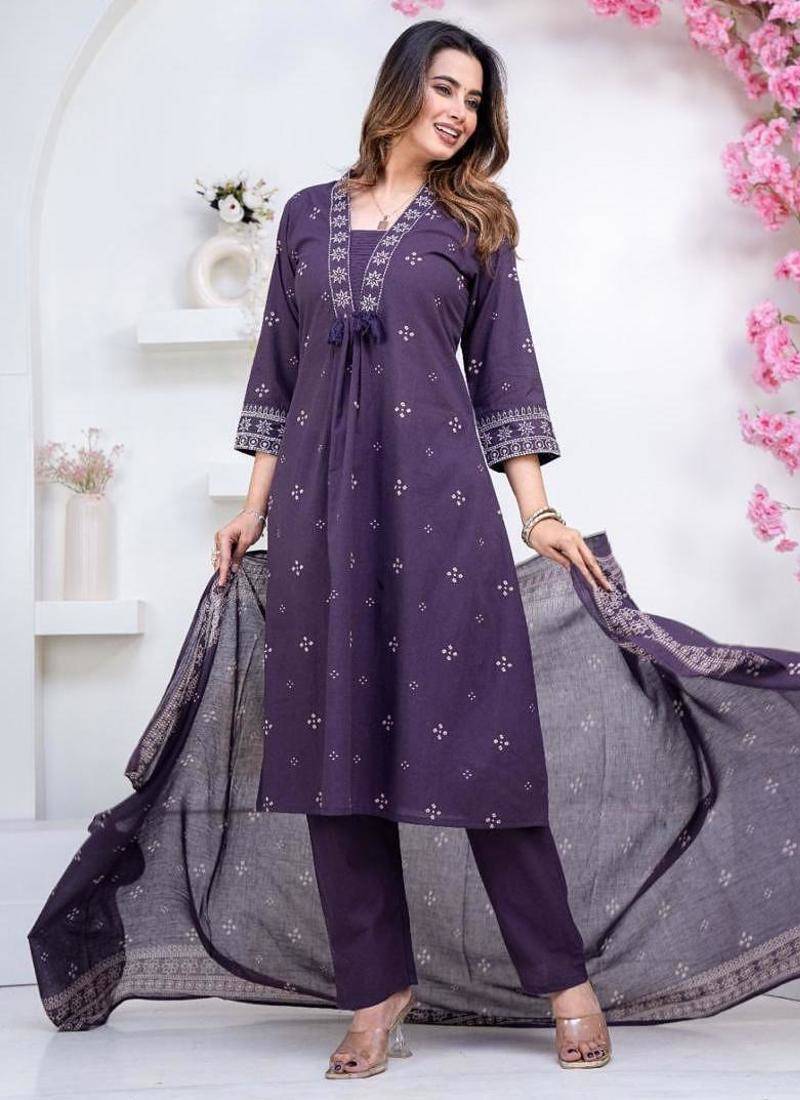 | Product Description | Cotton Cambric Printed A Line Kurti With Beautiful Hand Embroidery And Mirror And Fundi Work With Cotton Dyed Pant And Full Size Cotton Printed Dupatta…..Heavy Quality Easy Wash…. |