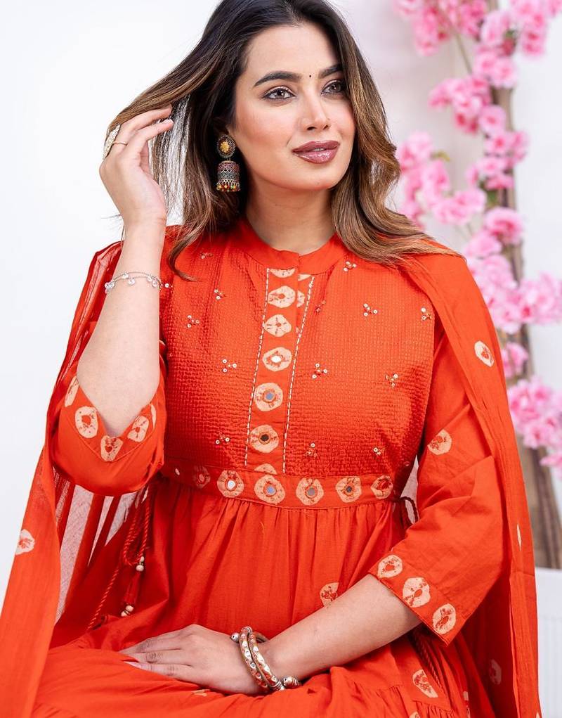 | Product Name | Orange Cotton Embroidered Kurta Set | |